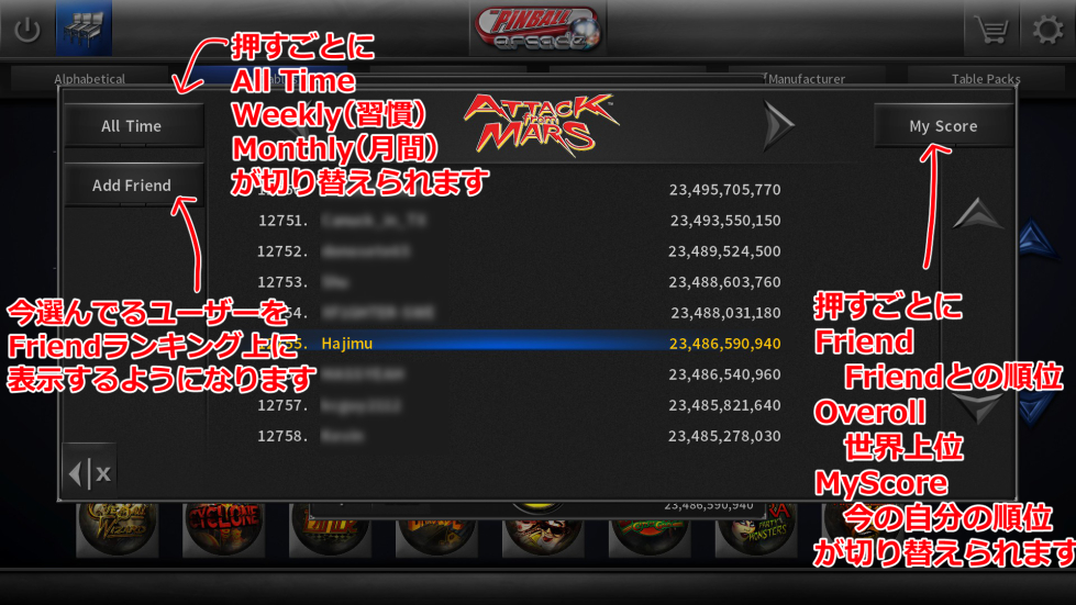 著者ハジムのスコア一覧ページ貼っておきますね。公式サイトにログインした状態で