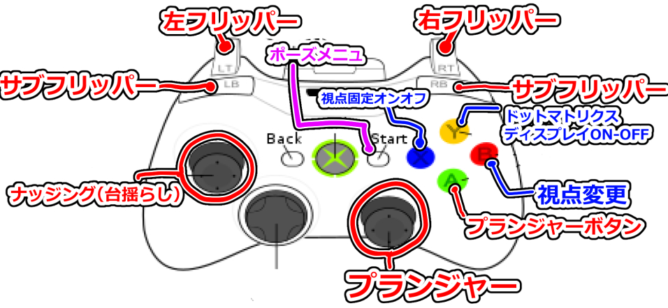 プレイ中の360コン操作(初期設定)は概ねこんな感じ。