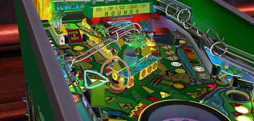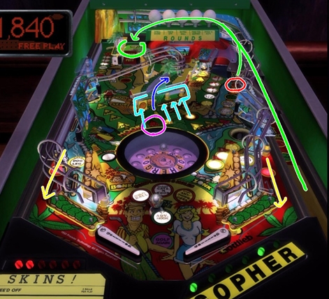 ・右ランプに「Hole-In-Own」点灯中にMeanホールグリーンに入れる。ゲーム開始時、ラウンド中に点灯します。スキルショットで狙いましょう。