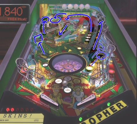 左上、火山、しょっちゅう行くことになります。右フリッパーまたは上部フリッパーから狙います。