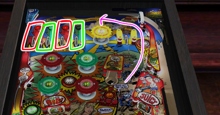 B 左下のバンパー リターンレーンのスターボタン フリッパー正面スターボタン