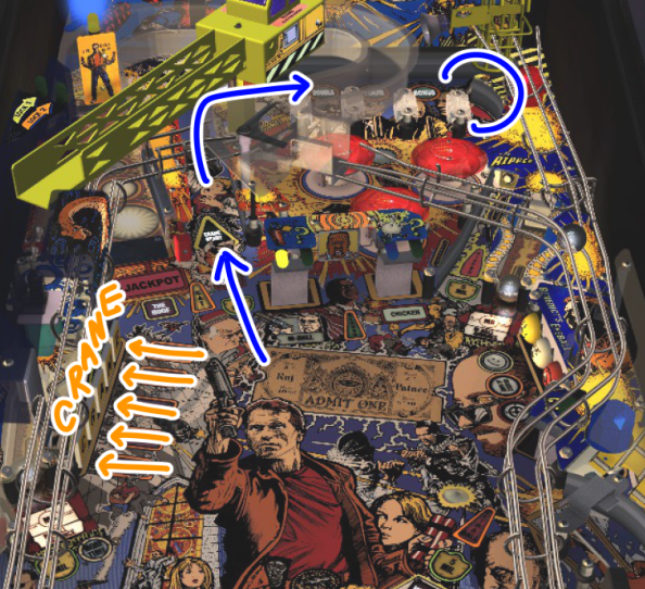 ・キャプティブボールに何回か当てて左スクープでマルチボール!左ランプでジャックポットしたらクレーン!