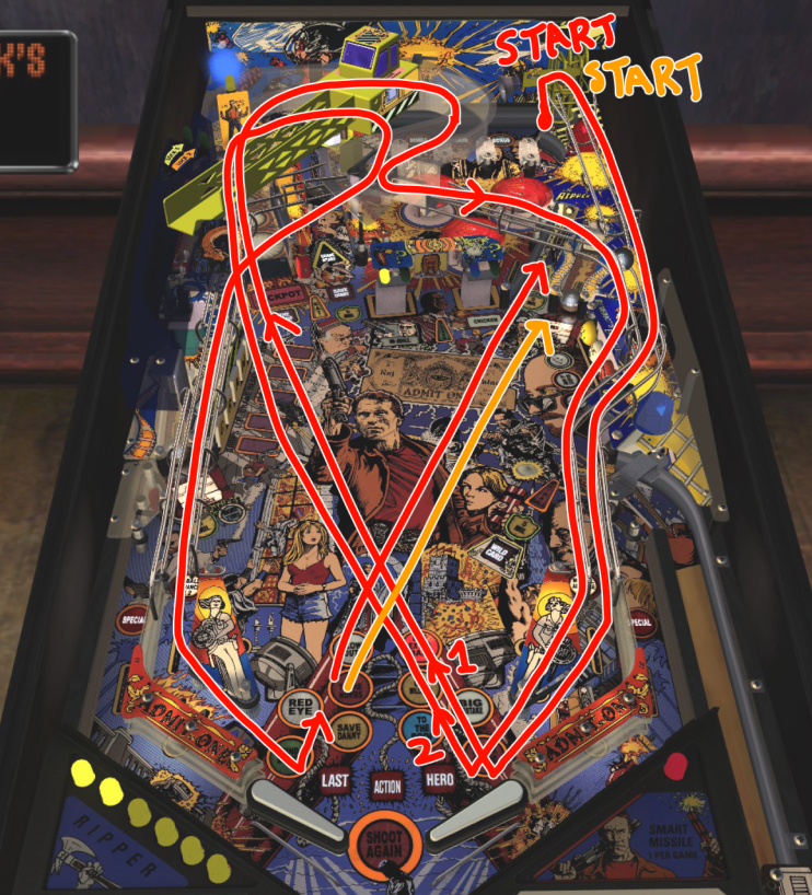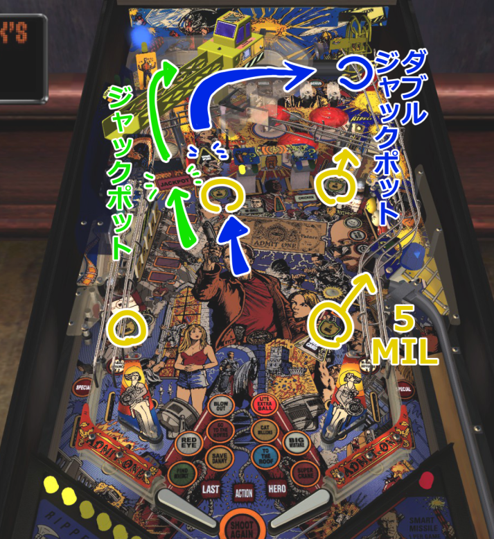 LAST ACTION HEROをそれぞれ点灯させるごとに10M、完成で50M、そしてマルチボールフレンジーモード開始です!