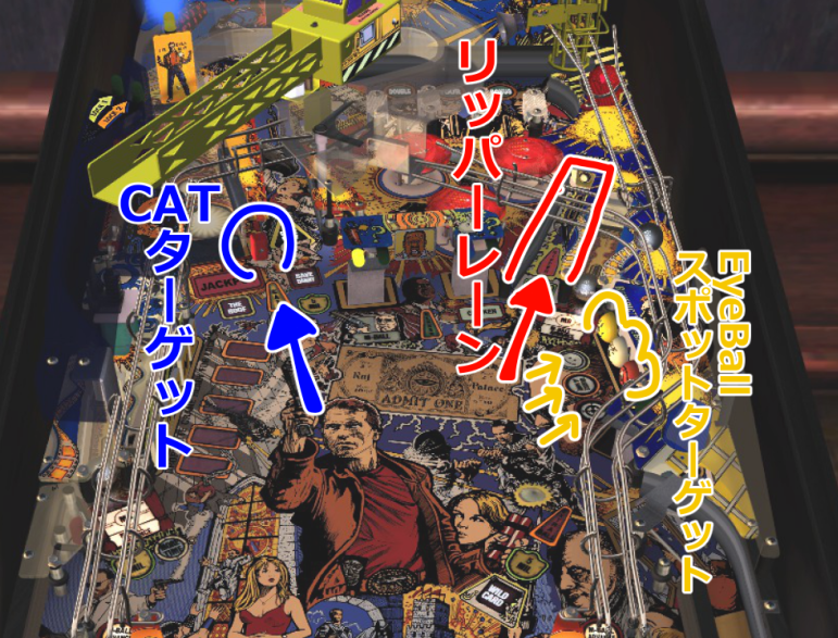 ここから右キャプティブボールに入れられると10Mを得て、M-BALL点灯のための4回ヒットを得ます。