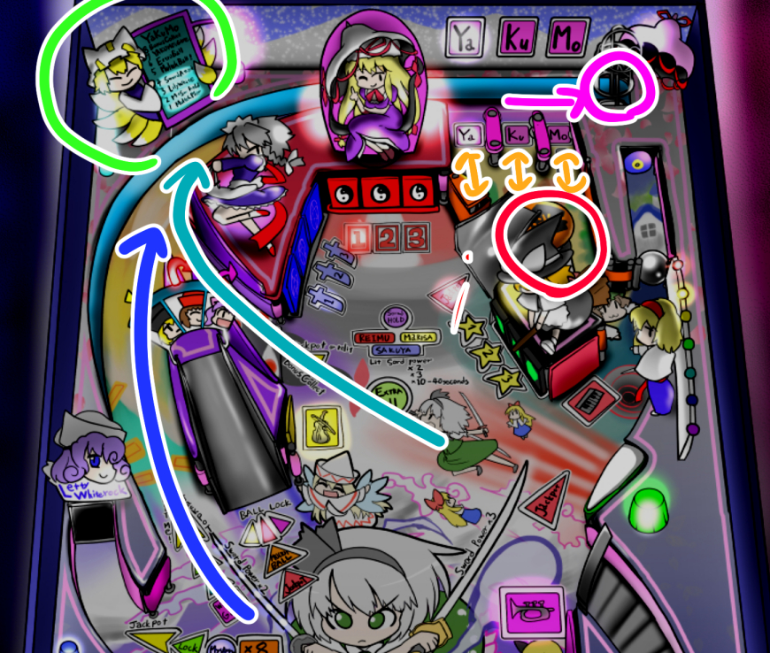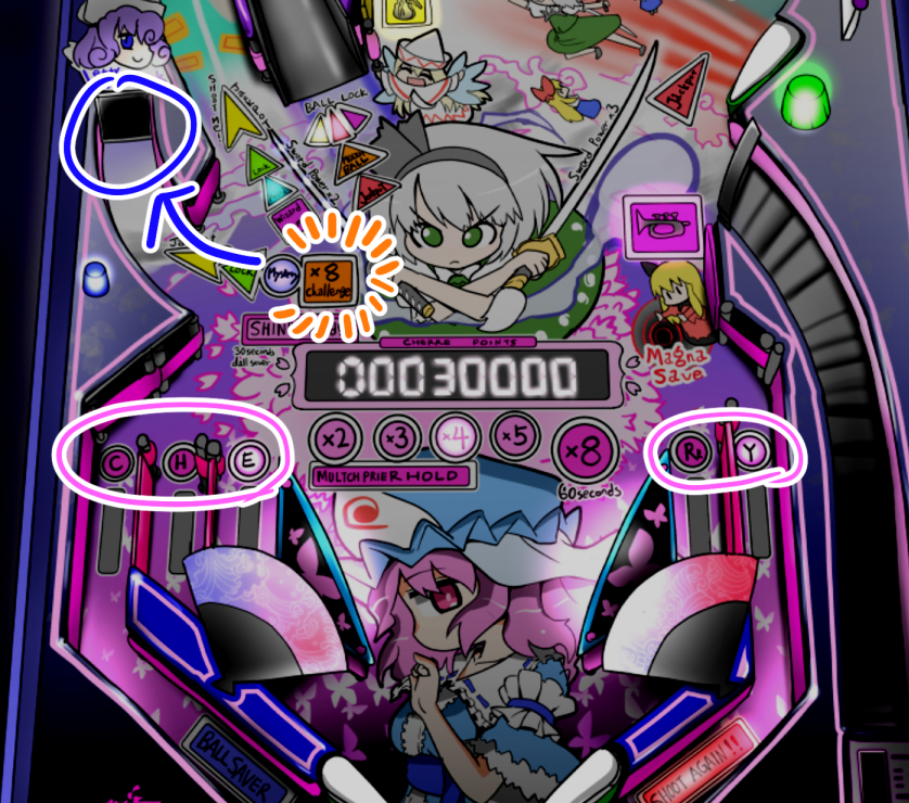 マルチボールを始めるのに重要なのが、冥界への入り口で騒ぐ騒霊たちです。